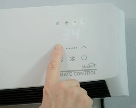Fixé au mur pour un gain de place et une sécurité d’utilisation optimale, ce climatiseur performant vous accompagnera été comme hiver avec son élément de chauffe en céramique et son ventilateur. L’appareil s’accompagne d’une télécommande pour activer ses fonctionnalités à distance d’un simple geste. Un écran de commande tactile est également proposé sur la façade du climatiseur mural.