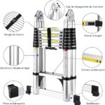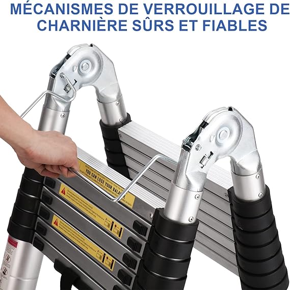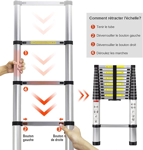 - ★ SÉCURITÉ: Le fond de l’échelle télescopique a un caoutchouc noir antidérapant qui aide à la fixer en place.