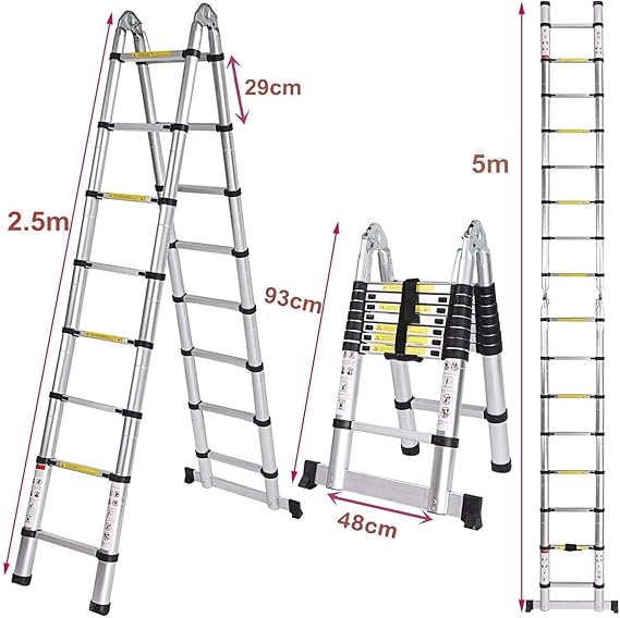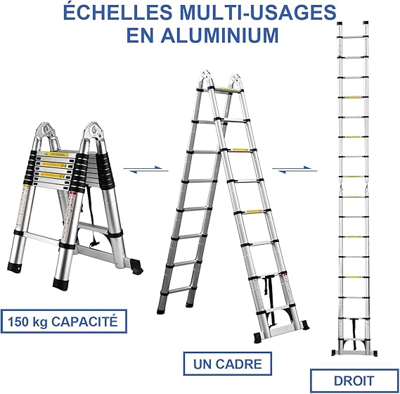 - ★ Simple et flexible : l’échelle pliante est idéale pour une utilisation dans les zones difficiles d’accès. Peut être facilement étiré à la hauteur souhaitée.