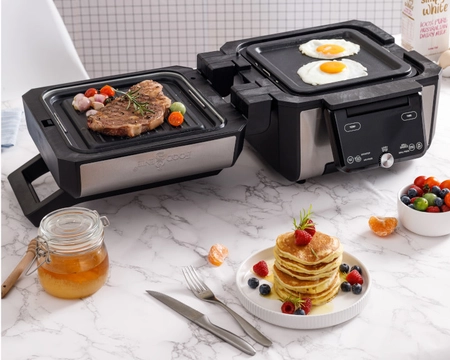 Cuisiner deviendra désormais un vrai plaisir avec GOURMAX PRO. Il intègre une technologie à double zone de cuisson qui assure un gain de temps considérable. En effet, vous aurez la possibilité de cuire en simultané les plats ou de doubler la quantité d’aliments sans perdre de temps. Il est possible d’alterner entre la fonction grill ou plancha ou de les utiliser simultanément grâce au système de plaque amovible et réversible. À savoir que ces plaques sont couvertes d’un revêtement antiadhésif qui assure une cuisson sans ajout de matière grasse.
