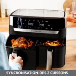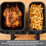 - DES REPAS COMPLETS EN QUELQUES MINUTES: air fryer avec tiroir XXL et tiroir standard pour cuire deux plats de 2 manières différentes en même temps. Synchronisezles cuissons pour qu’elles se terminent en même temps