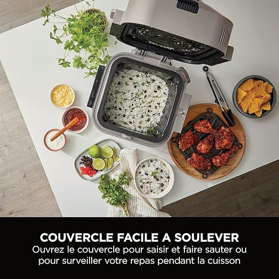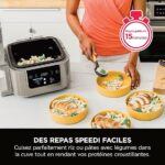 - 10 MODES DE CUISSON : Speedi Meals (Repas rapide), Steam Air Fry (Frire et Vapeur), Steam Bake (Cuire au four et Vapeur), Steam (Cuire à la vapeur), Grill, Air Fry (Frire sans huile), Bake (Cuire au four), Dehydrate (Déshydrater), Sear/Sauté (Saisir/Faire sauter), Slow Cook (Mijoter)