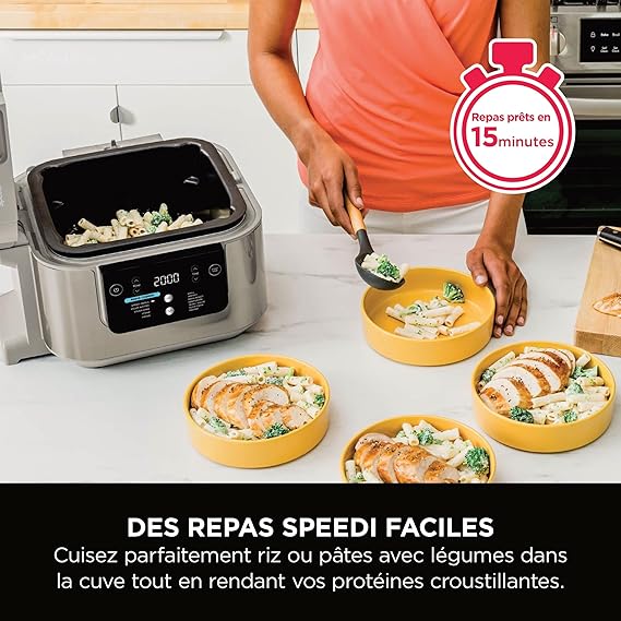 - EXCLUSIVITÉ AMAZON: Couleur Stone/or. Cuisinez rapidement trois préparations pour toute la famille en seulement 15 minutes* (* Sans compter le temps de préchauffage). Créez des milliers de recettes personnalisées avec le site Speedi Meal Builder.
