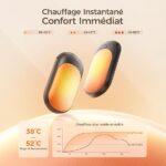 - Chaleur instantanée, chaleur durable : dites adieu aux frissons de l’hiver. En seulement 5 secondes, vous êtes enveloppé de chaleur ; avec trois réglages de température pouvant atteindre 52 °C, vous restez au chaud pendant 4 à 8 heures, ce qui en fait un chauffage à batterie indispensable pour l’extérieur