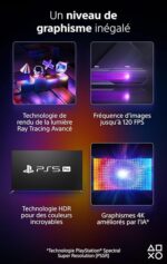 - PlayStation Spectral Super Resolution : Bénéficiez d’une image ultra-nette sur votre téléviseur 4K grâce à la résolution améliorée par l’IA.