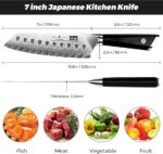 - ✔ Couteau Japonais avec Manche Ergonomique en Matériau G10 – Le manche ergonomique vous procure la prise idéale pour assurer l’équilibre avec le couteau du chef, rend nos couteaux de cuisine plus professionnels et réduit la fatigue ou l’engourdissement des mains après une coupe prolongé Il est imperméable, résistant au froid et indéformable. Excellent contrôle de la poignée, antidérapant, confortable et durable. La conception à double lame est plus pratique pour les droitiers et les gauchers!