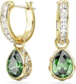 - Ces boucles d’oreilles Chroma illumineront vos tenues grâce à son design unique en placage de ton or composé de mini-créoles ornées de pierres carrées incolores et d’un Swarovski Zirconia de taille poire et de couleur verte entouré de cristaux carrés transparents