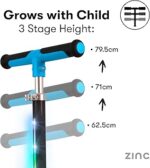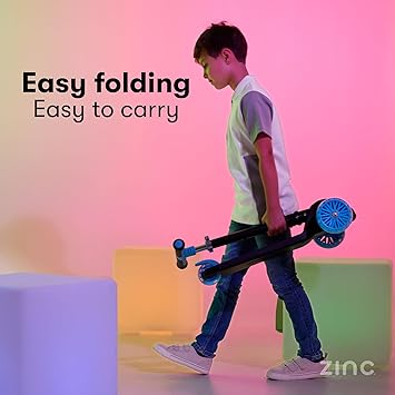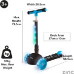 Zinc T-Motion Shine Trottinette Pliable à Trois Roues pour garçons et Filles à partir de 3 Ans avec Plateau Lumineux à Del, Guidon réglable, Commandes d’inclinaison et de Direction, Frein arrière