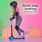 - Design sûr et confortable : construit avec trois roues durables et un frein arrière sécurisé, cette trottinette pour enfants assure une conduite stable et sûre pour les débutants. C’est le choix ultime parmi les trottinettes pour enfants pour le plaisir et la sécurité combinés